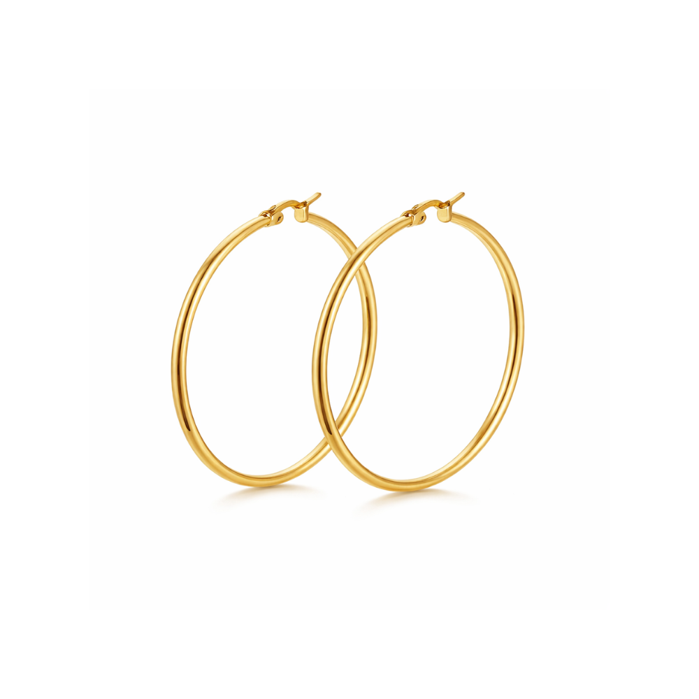 • Material da peçaProduzido em aço nobre antialérgico banhado a ouro 18K, o Brinco Argola...